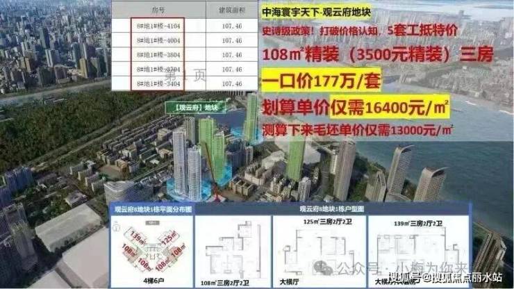 中海寰宇天下观雲府8号地块目前楼盘现在做清栋价格小面积单价1万六多左右就可以买得到。还带精装修。比旁边金茂樾满晴川毛坯单价18000多性价比你可以对比下。