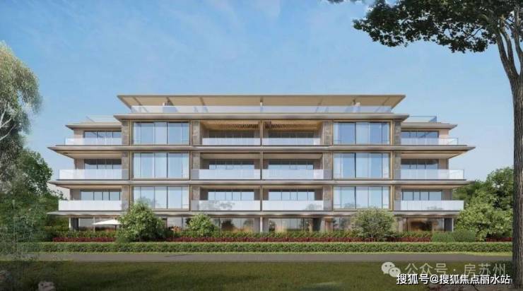 ※栋式天地叠院立面:现代简雅立面勾勒太湖水韵纹脉线条,刷新苏州天际线