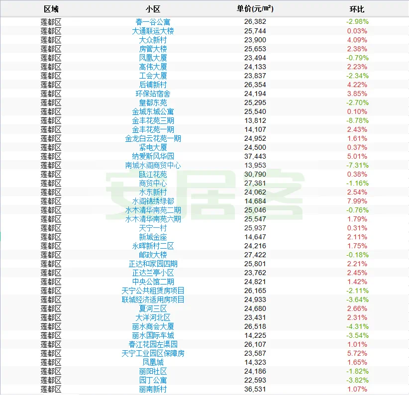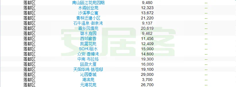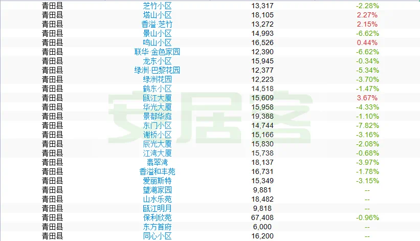 02、小易也贴心的给大家准备了丽水各县小区房价一览表,一起来看看吧~