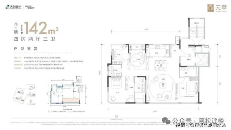 建面约142平,四房两厅三卫: