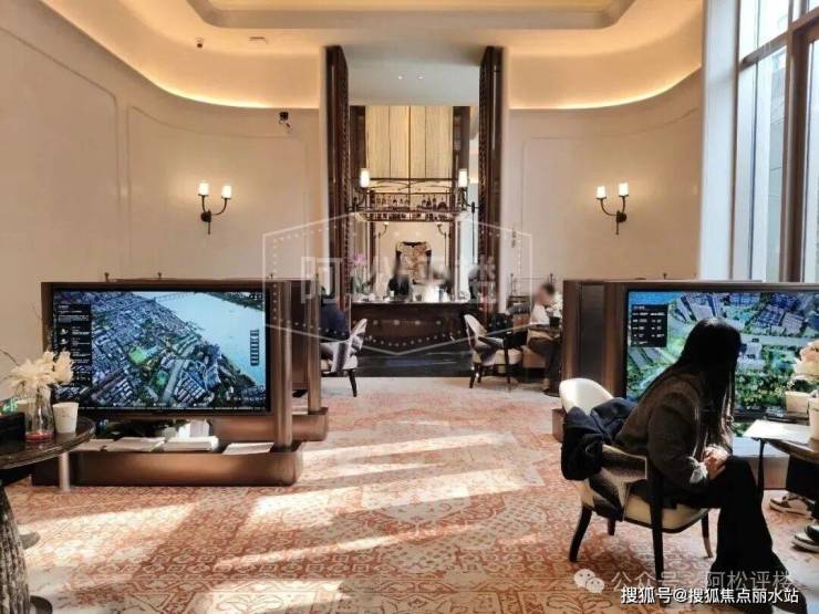 走进下沉式会所,目前部分板块作为接待区,在接待客户。