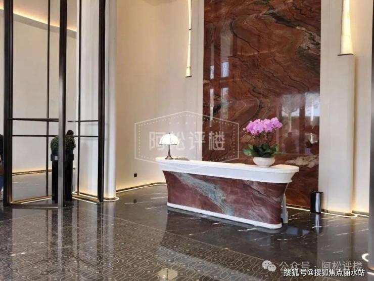 一楼单元入户,石材、造型等都有,看着看不错。