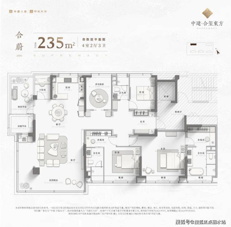 235㎡奢适户型:荣耀女王玄关,270°全景端厅!尊享独特设计,一入户即显女王风范,玄关处以巧思掩映,既彰显仪式之美,亦守护家居隐私。270°环幕端厅,拓宽无限视野,尽显待客之尊,演绎非凡生活气度!
