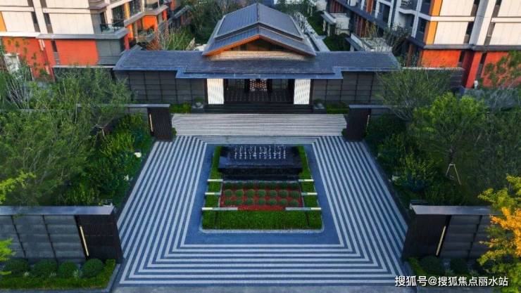 万科檐语间的门庭,和徐州一般项目很不一样,它迎宾界面的尺度高达约60米,大屋檐高约10米,中央为灵动的水景,不仅气场十足,而且很有场景感。