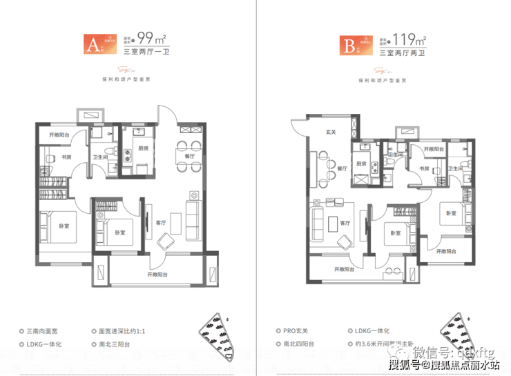 项目规划建面约99㎡/119㎡套三、建面约130㎡/143㎡套四户型,从场景到情景,从集合到交互,覆盖玄关、餐客厅、卧室、阳台等一系列创新标准,三连通游轮甲板式南向阳台、LDKBG 空间一体化设计、南北多阳台、主卧小家化等满足一家三代居住需求,给小太阳和夕阳红更好的关照。