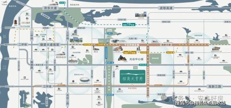 项目位于东湖高新区光谷中心城,距离三环线约3.8公里,属于光谷醇熟地块。