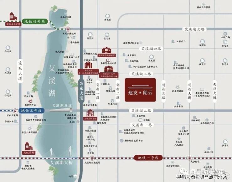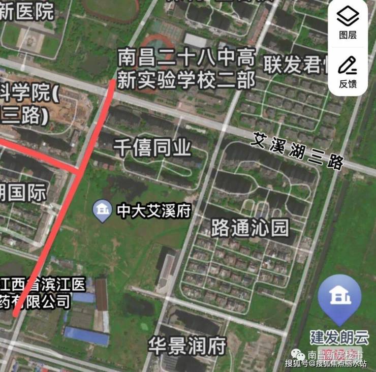 ③主干道:项目南面300米就是艾溪湖二路,这条路往西分别是艾溪湖隧道和火炬大街,再到青山湖就是国威路、阳明东路,直通八一大桥到达红谷滩,也是非常方便,其余主干就是昌东大道、天祥大道以及沿江北大道,参考第②条。