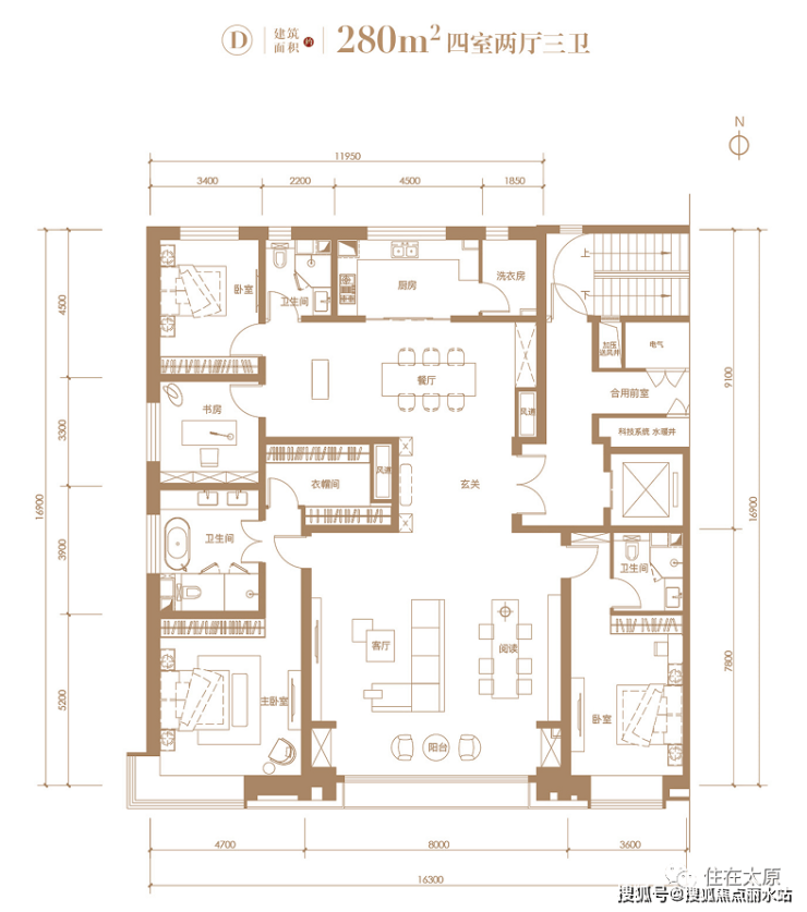 一层一户,电梯入户设计;客餐厅+中西双厨+L型270°转角阳台,构成中央生活空间;南向两个主卧空间,北向两个卧室,东侧的主卧为星级套房设计,设有超大衣帽间、分离式卫浴空间双洗漱盆。