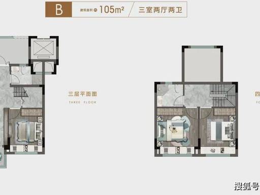 建面约 105㎡上叠:带星空阁楼与宽景露台,上下分层动静分离,一层客餐一体连通庭院,二层卧室区静谧私密,阁楼可改造为书房、影音室,总价约 353 万起,实现墅居梦想。