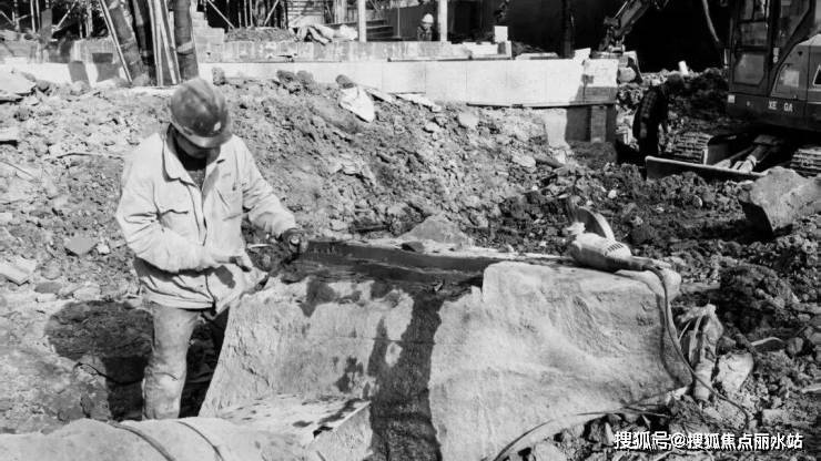 为保证整体效果呈现,项目施工过程大量使用人工切割打凿,自然面、叠水景石根据现场结构进行二次人工加工,强化硬质铺装的东方气韵。