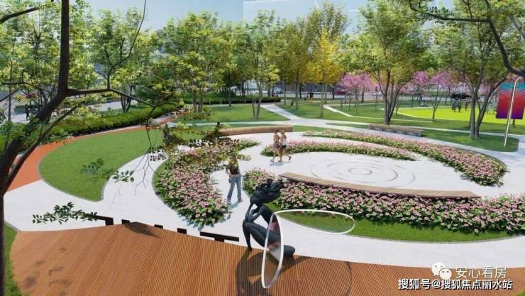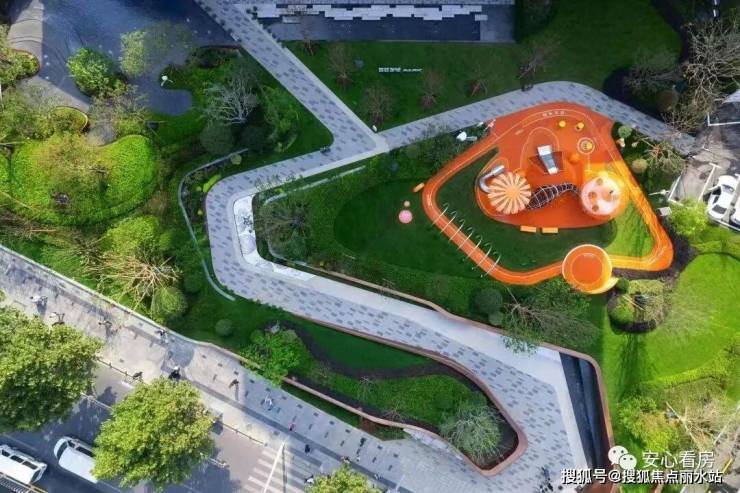 西侧自建约1.2万方运动主题城市绿地公园,以新自然主义景观设计,将项目地块融为一体,让绿意化作流动的风景,渗透进街道与空间。