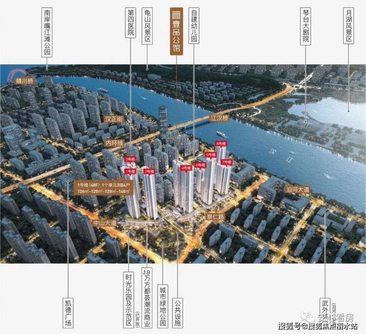项目于内环核心闹中取静,纵揽江湖山园四重风光,南眺汉江、月湖与龟山,观千载江山盛景,出则享时光公园、中山公园、南岸嘴江滩公园三大城市绿舟,领略自然诗意。