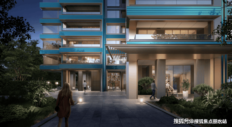 项目以《千里江山图》为灵感,首创青绿美学立面,皇家绿釉面陶板的外立面在阳光下熠熠生辉,尽显奢华之意。