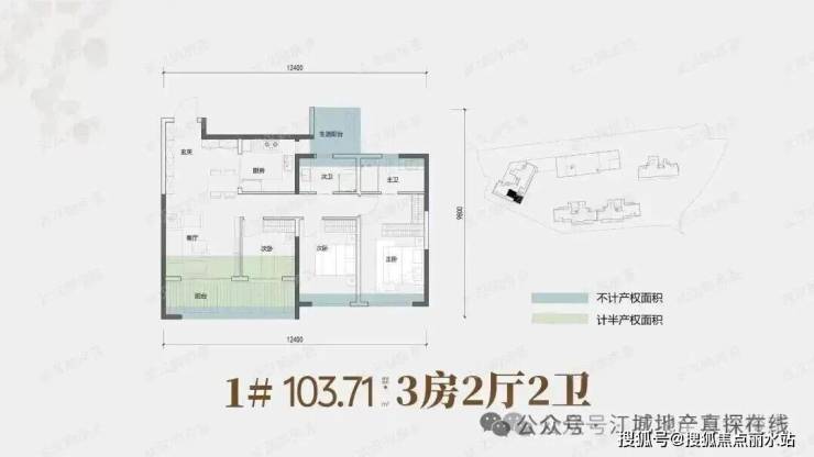 项目3#楼即将取证,建面约100㎡三房、125㎡四房,2梯3户毛坯户型;目前在售1#楼,建面约100、104、125㎡毛坯户型,