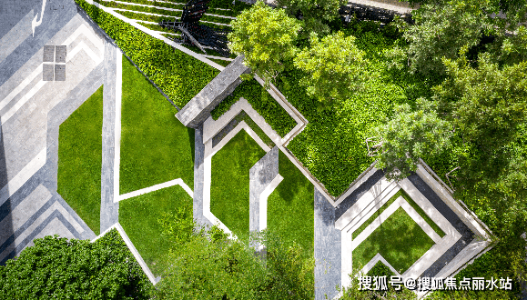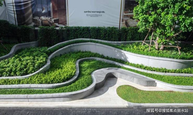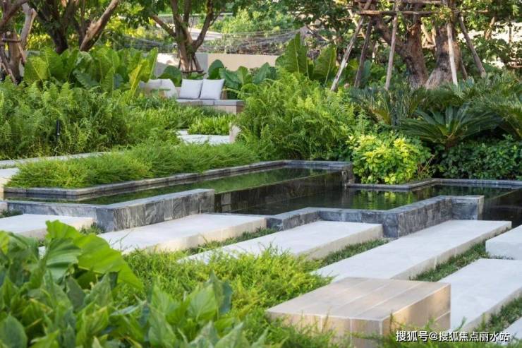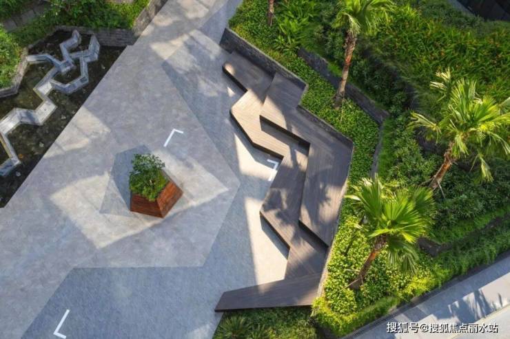 在景观设计中,休憩空间也可以利用高差变化来实现,要么抬升空间,要么下沉空间。两者通过高差变化自然划分出不同属性的休憩领域,丰富空间层次。