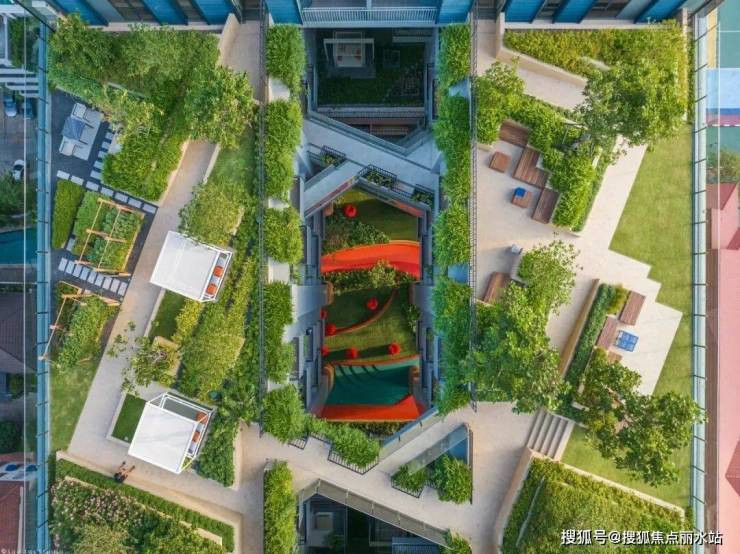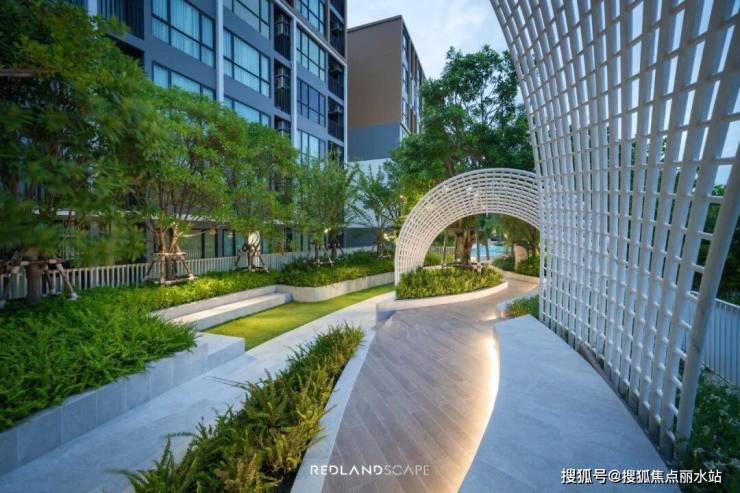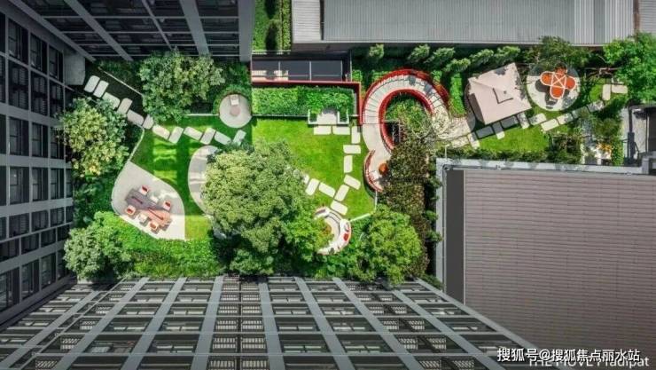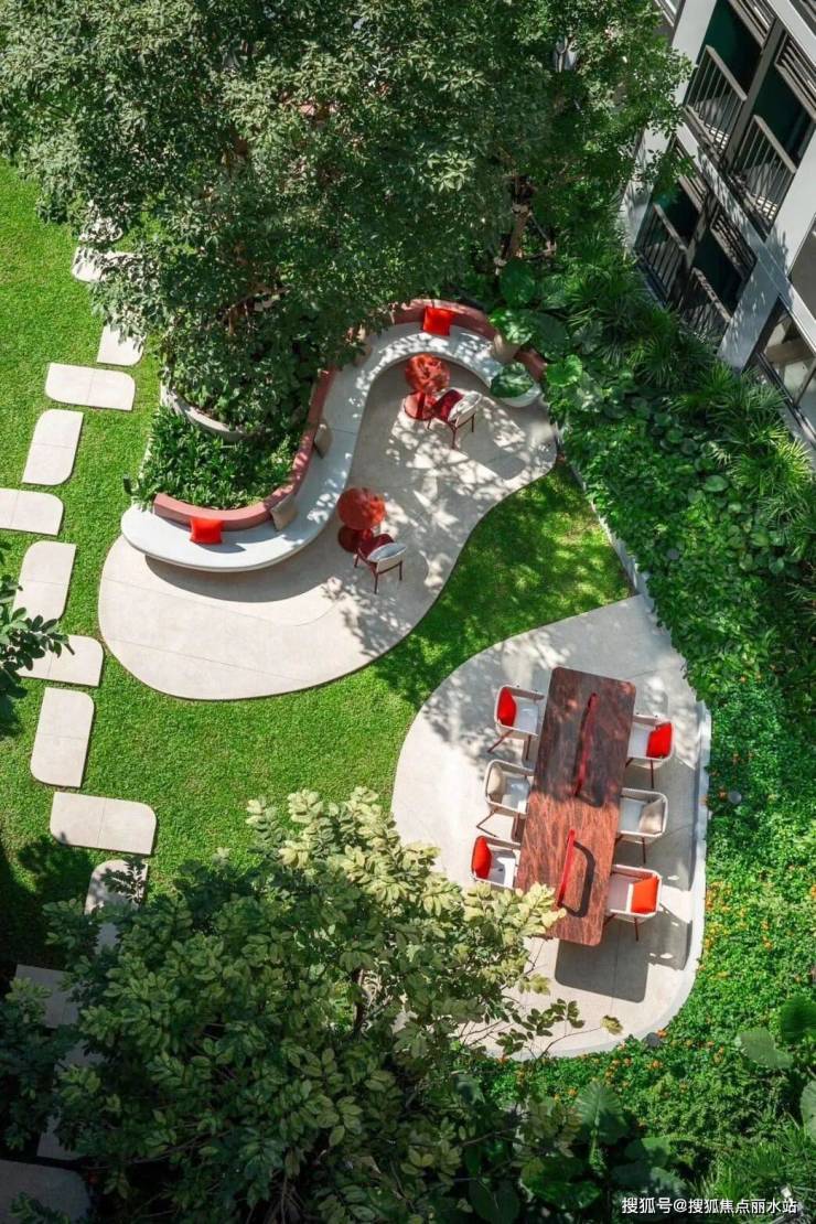 比如在曼谷的高层公寓-CONNER Ratchathewi ,知名设计公司 Landscape Collaboration 为所有业主打造了一处下沉式“公共而私密”的共享空间。