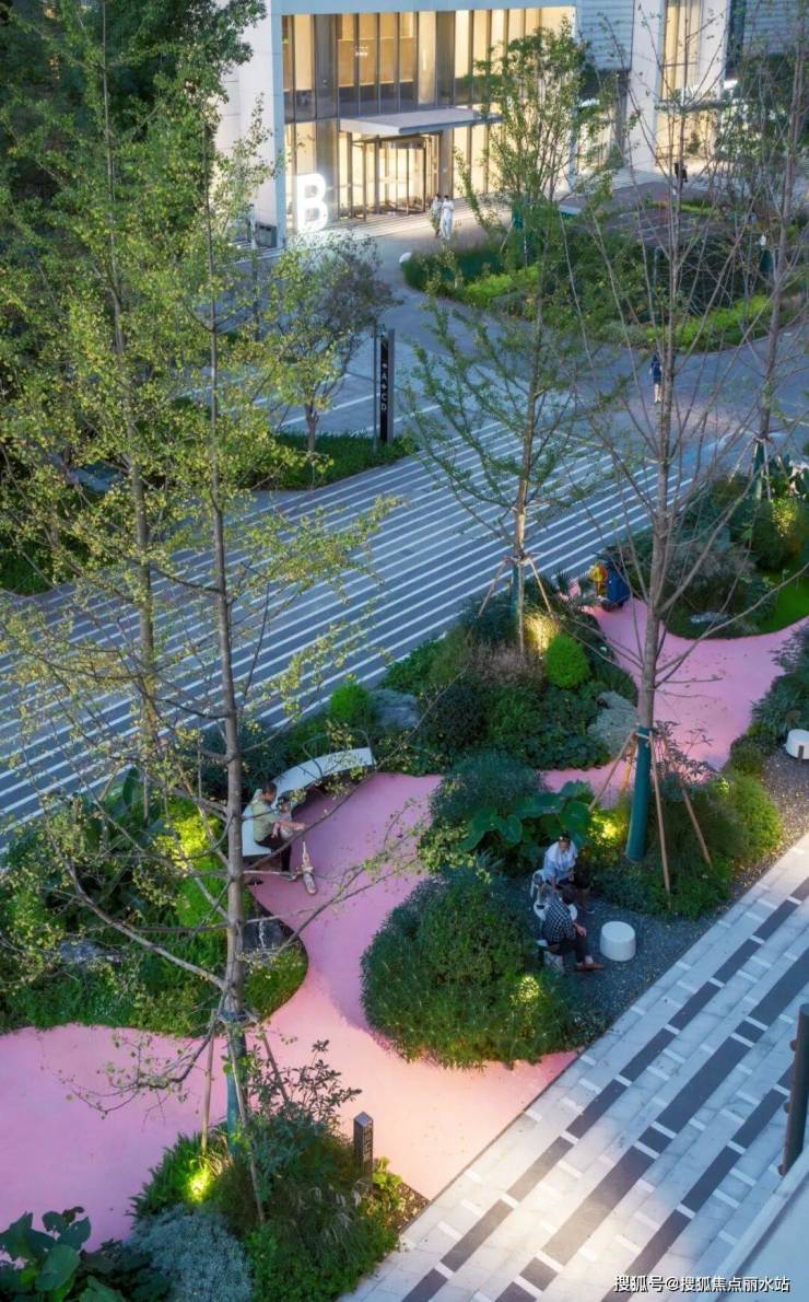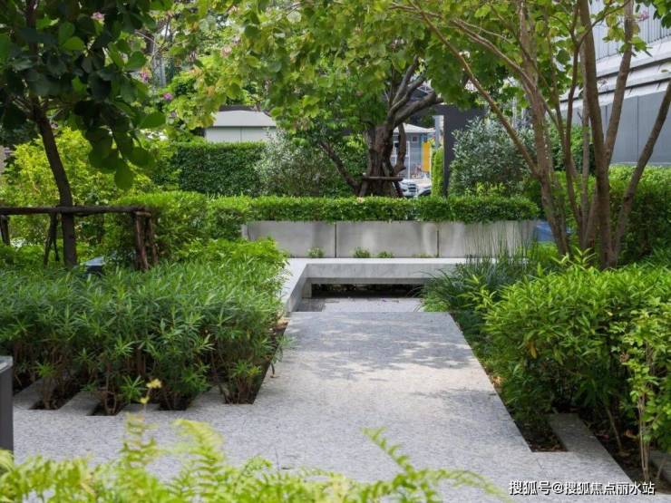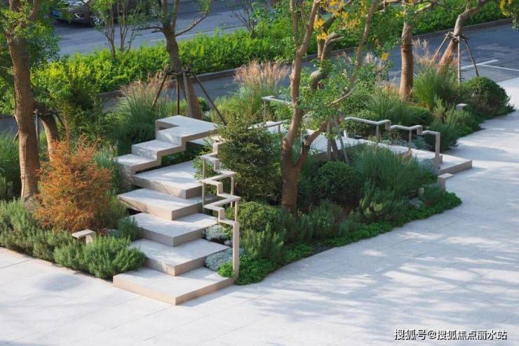 这样的巧妙设计,既利用高差形成相对私密的休憩区域,又通过植物软化了硬质景观,让人们能在这处下沉空间里,于光影交错、绿意环绕中,享受惬意的休憩时光。