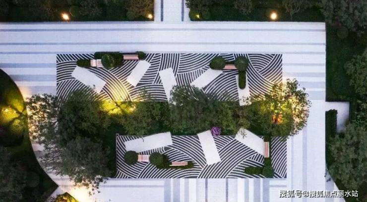用地面铺装划分休憩空间,可以通过铺装的材质、色彩与纹样的差异形成隐形边界。这种 “以铺代墙” 的手法,既保持空间流动性,又让使用者通过脚下触感与视觉差异,自然感知不同休憩场景的功能属性。