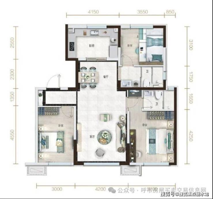 🌈建筑面积约125㎡ 三室两厅两卫 毛坯