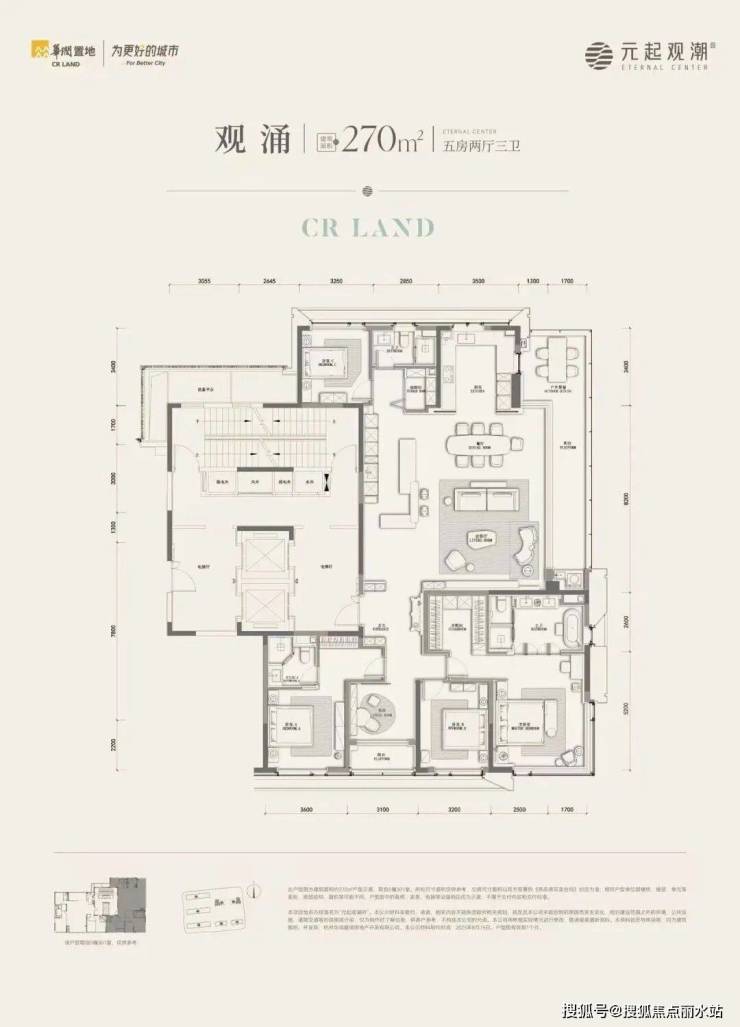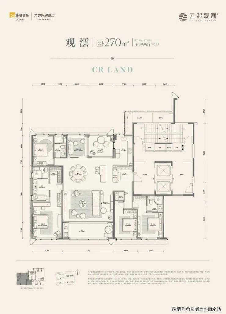 建面约270㎡户型有边厅和南厅两款: