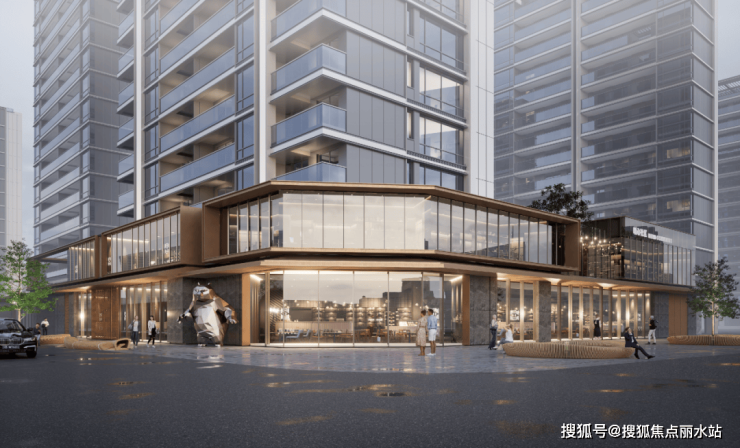 高层建筑的立面着重展现优雅、端庄、内敛、温润、平和的质感,强调水平、飘逸的语言,弱化纵向元素,纵向承重构件内收、凸显水平线条。