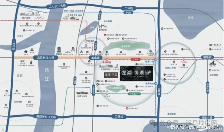 龙湖御湖境位于洪山区洪达巷与工大路交汇处,也就是武汉理工大学附近。项目属于洪山区二环内,与二环线直线距离约800米,与街道口商圈直线距离约1.2公里左右,属于街道口商圈的辐射范围。