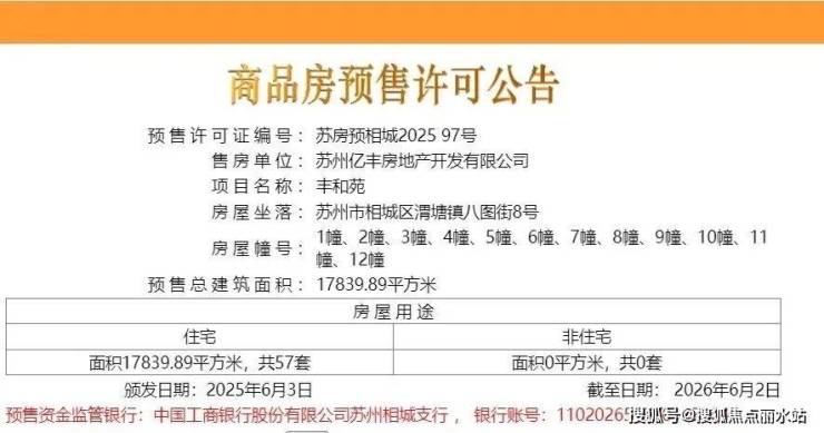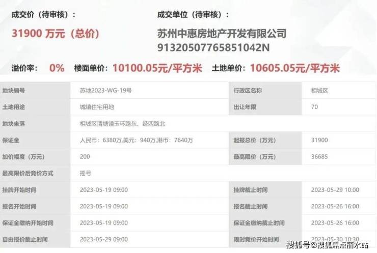 亿丰园,即苏地2023-WG-19号地块,位于相城区渭塘镇玉环路东、经四路北,是2023年,苏州中惠以底价31900万元拿下,成交楼面价10100元/平。