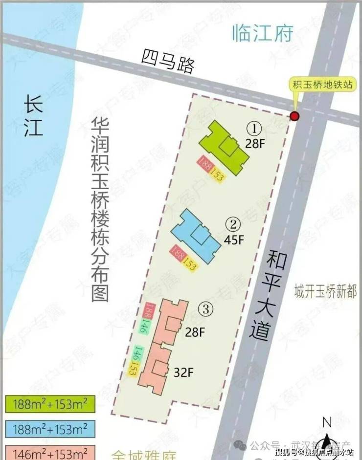 项目距长江仅约350米,高区房源可享江景视野;正地铁口物业,距地铁2号线、5号线积玉桥站仅约100米,15分钟可达江汉路、光谷等核心商圈;周边和平大道、长江大桥等主干道环绕,自驾便捷。