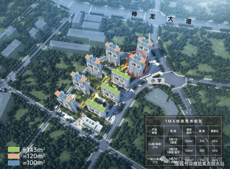 从套数来看,户均面积差不多114.5平左右,偏改善的面积段。