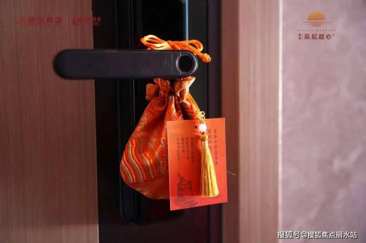 更令人称道的是,辰起越心在每一户门上悬挂"五谷丰登"锦囊福袋,以金丝绣线勾勒祥云纹样,内藏稻、黍、稷、麦、菽五种谷物,既承袭"仓廪实而知礼节"的农耕智慧,又暗含"家宅丰饶、事业昌隆"的美好期许。
