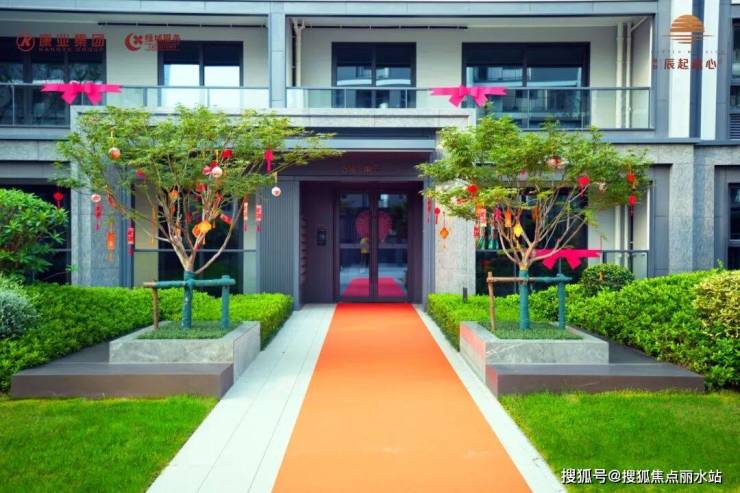 沿红毯徐行,花柱矩阵与火红灯笼建起构建起进阶礼序,直至单元门前朱漆镂空的传统窗花元素跃然眼前,完成从公共空间到私属领地的仪式过渡。