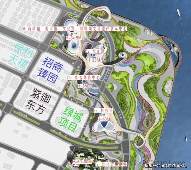 项目位置:海之韵公园旁、紫御东方东侧,东侧紧邻四馆一中心,项目东北两侧观海南向观山