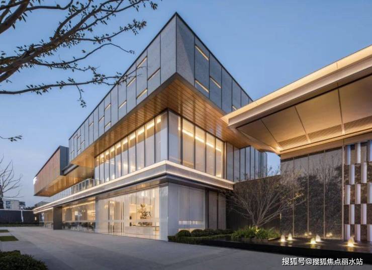 立面考究:璃栏板+一体板+铝板+石材,现代典雅立面