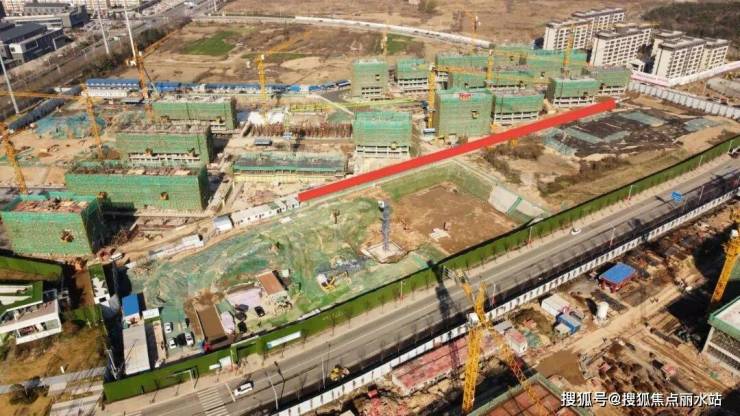 为满足后期大客流的情况,海洋馆地下停车场规划得比较大,海洋馆场馆以北地上部分后期做园林绿化处理,绿化部分与小区之间规划了市政道路(下图标红为后期市政路),道路与小区南排建筑相邻。