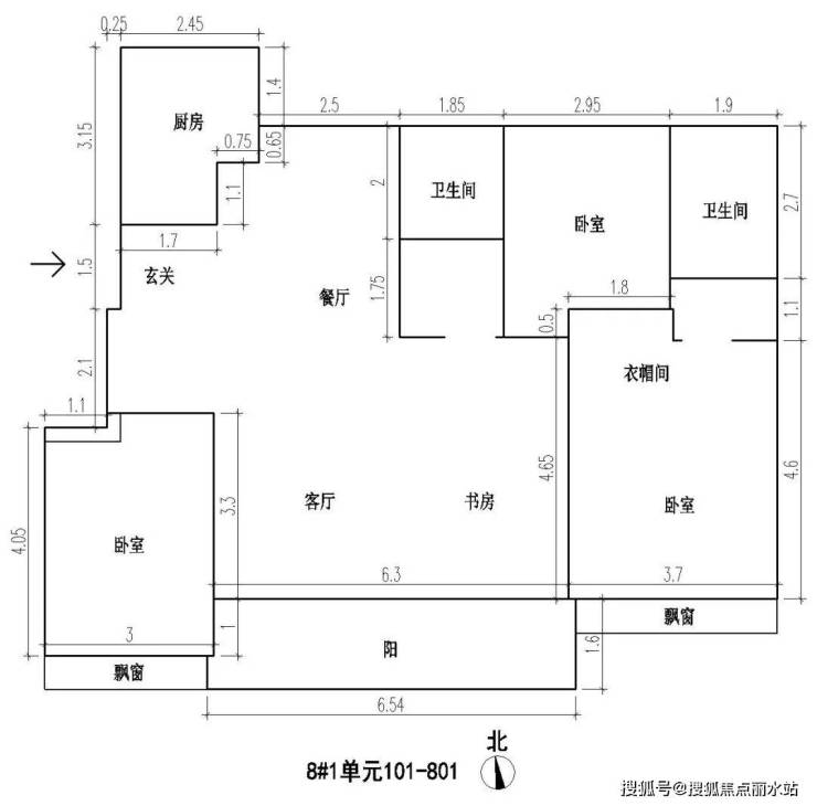 从户型图能够看到,119㎡与136㎡的南向次卧都有1.1m长的电梯井背墙。