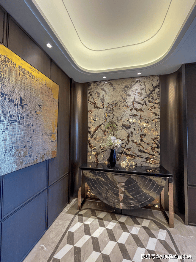 大宅开门便是艺术和匠心,进口奢石,底部石材水刀拼花,铺的是天然石材