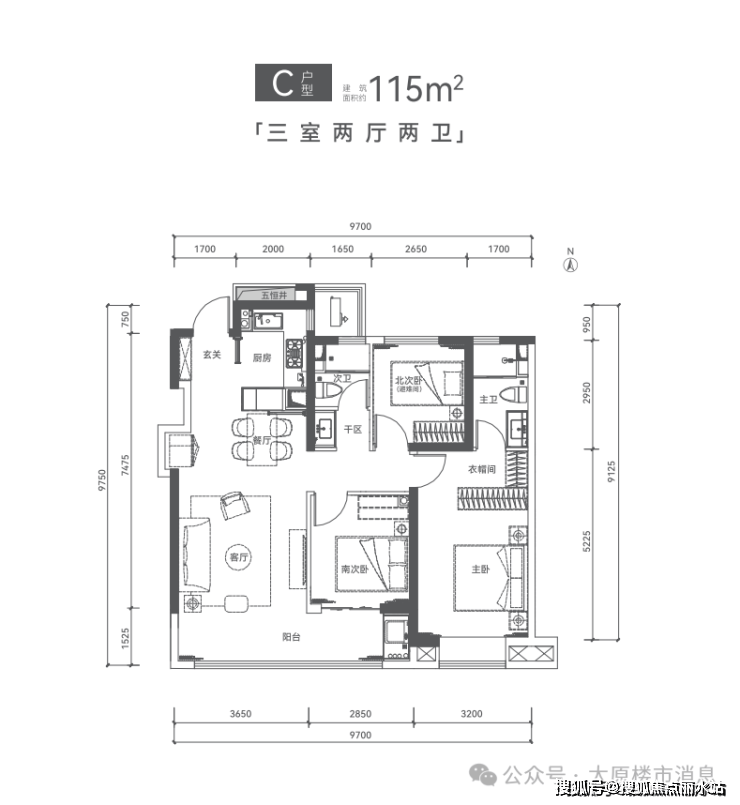 「动静分离」生活空间精心规划,动静区域泾渭分明,起居有序。