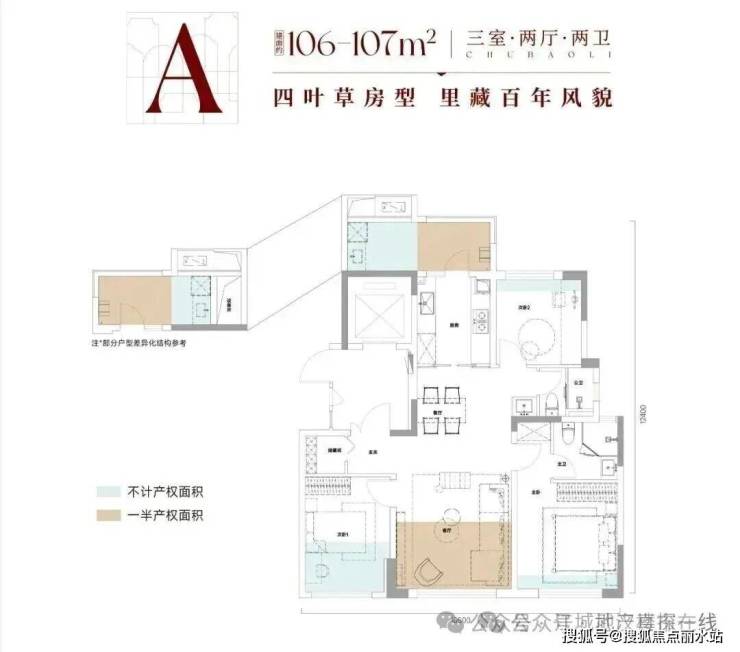 建面约106平 三房两卫,南北通透,并且是边户,有专属的电梯前室和入户的独立储藏间,还配有北阳台,确实相当难得。
