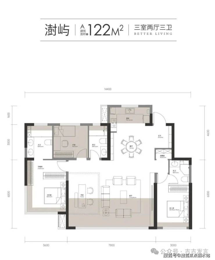 约14.4米面宽、约7.8米大横厅、双套房设计