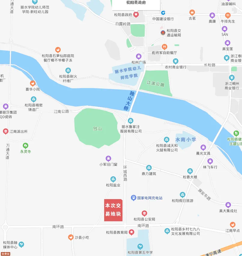 土地位置:松阳县县城南城独山区块,环城南路北侧,环城西路西侧。