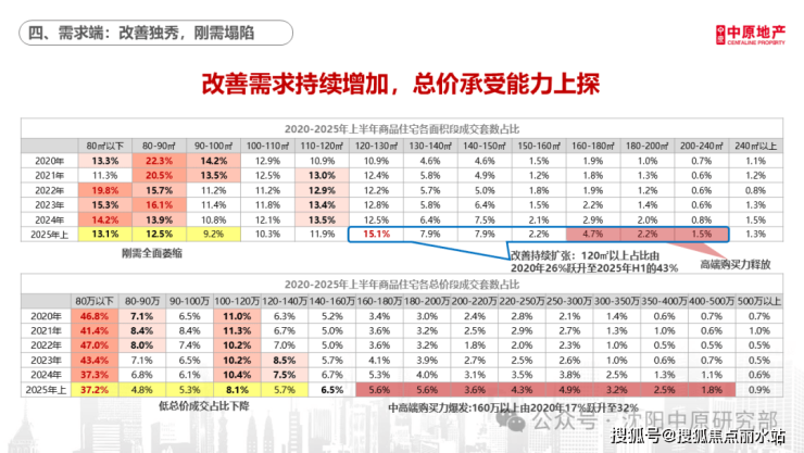 数据显示,近五年间,沈阳300-350万/套商品住宅的成交占比从1.4%飙升至3.2%,增幅翻倍;同时,300万以上市场总量占比也从3.4%大幅扩张至8.4%,增幅高达147%。这意味着沈阳的核心购买力正加速向稀缺资产集中。