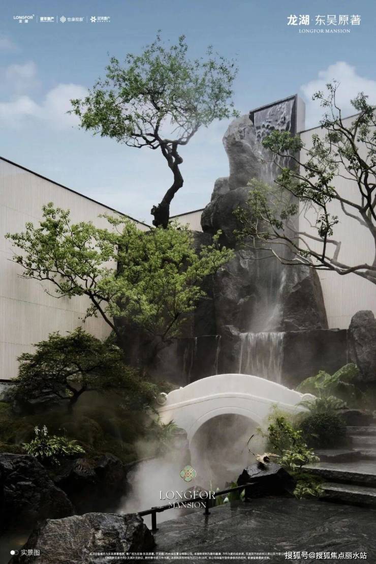 在苏州,龙湖东吴原著深度萃取苏州古典园林精髓,三进式布局营造沉浸体验:一进“芳薇院”以300年紫薇古树点睛;二进“日照金山”借汉白玉雕塑与金箔诠释格调;三进“高山流水”复刻网师园引静桥,8米叠瀑意境悠长。