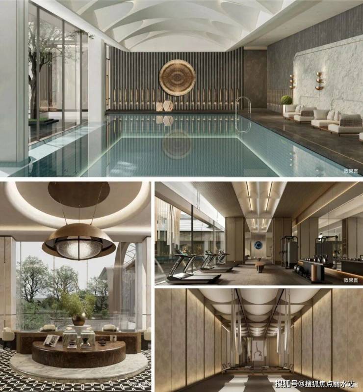 约1500㎡高奢会所规划恒温泳池、私宴厅、健身房等八大功能空间,兼顾日常休闲与圈层社交需求。