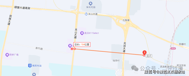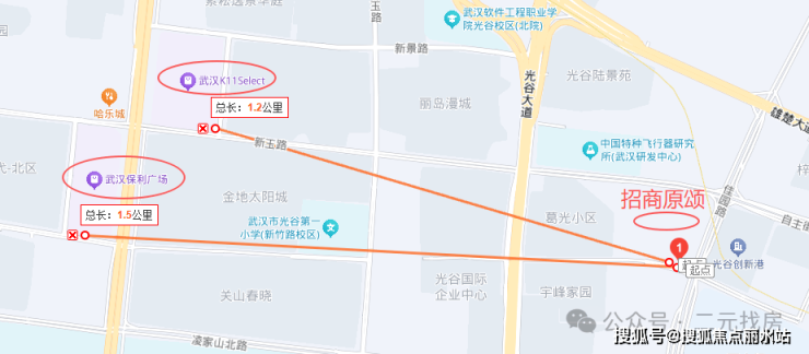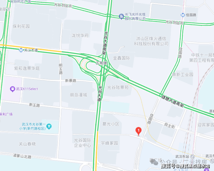 项目位于东湖高新区自主街和佳园路交汇处,属于三环内的关山板块,但距离关山大道直线距离约1.4公里。