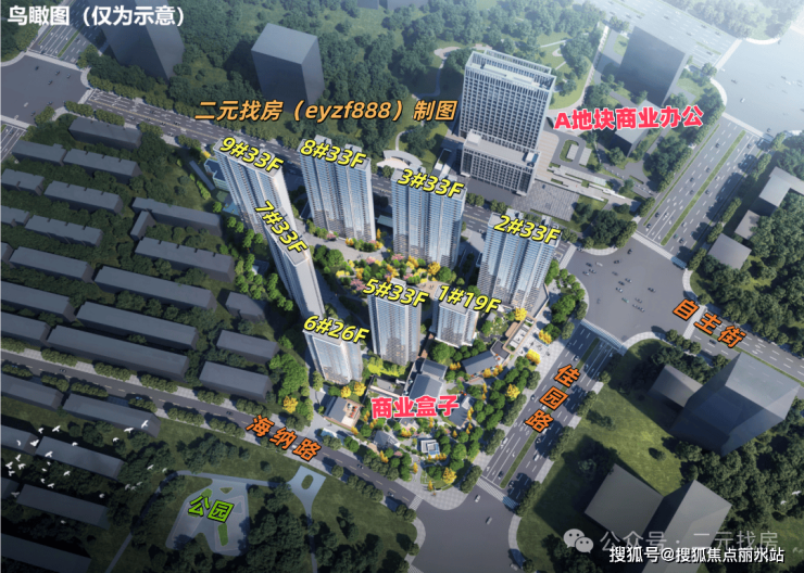 项目一共有8栋住宅。根据拿地要求,建筑高度不超过100米,因此总高最高为33F。其中,1号楼总高19F,2#、3#、5#、7#、8#、9#号楼为总高33F,6号楼总高26F。