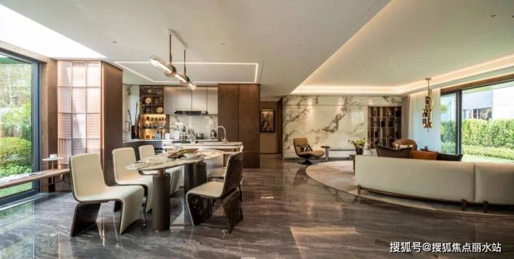 约12.3米南向大面宽,三开间共同迎接阳光。晨光中阅读,夕阳下品茶,光影成为了家中流动的风景线。
