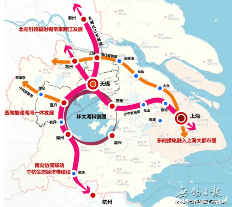 无锡作为长三角几何中心,向东融入上海大都市圈,向西直面太湖湾科创带。随着长三角一体化上升为国家战略,联动周边的环太湖城市群,在互联互通共建共享中全面打造“国际湾区”,见证这片土地的澎湃雄心。无锡“太湖湾科创带”规划“一核三湾,一城十园”,打造国内一流、具有国际影响力的科技创新高地。
