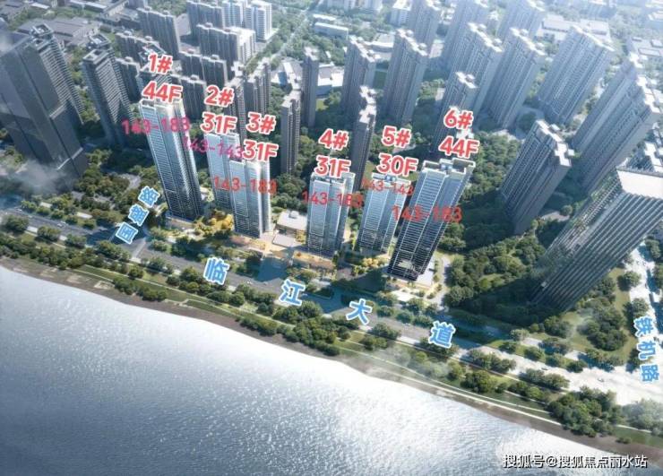 ⚡️ 布局巧妙:采用 V 形折线布局 + 错位排布,6 栋住宅(4 栋高层 + 2 栋超高层)全部无遮挡直面长江,打破传统对视限制,实现户户看江。