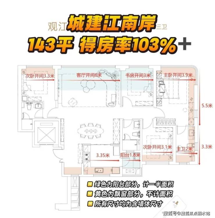 💯 超高得房率:作为准四代住宅,灵动阳台 + 飘窗全赠送,得房率超高,143 平得房率达 103%,183 平更是达到 113%,实现 “零公摊” 甚至 “负公摊”,性价比凸显。