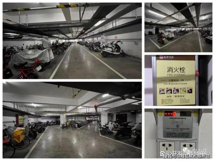 非机动车停放处位于地下,配备了电动车充电桩,业主可刷卡使用。整体空间开阔,再加上层高较高,环境比较明亮,地面非常干净,而且车辆摆放整齐,地面标识线清晰,配置了消防栓。